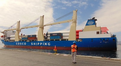 Hasta el Terminal Puerto de Coquimbo (TPC) y a bordo del Daxiang, llegaron 10 nuevas turbinas de Goldwind para el parque eólico Punta Sierra, que la empresa de energía renovable Pacific Hydro construye en la comuna de Ovalle.