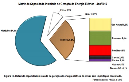 En tanto, si se hace foco en la producción de electricidad, en 2016 la hidráulica generó 400.841 GWh, con un crecimiento del 7% respecto del año anterior; la biomasa, 23.626 GWh y un 3,9% más; la eólica, 32.369 GWh, con 52,2% de crecimiento; y la fotovoltaica 28,76 GWh, un 50,9% superior al año anterior. En total el sistema interconectado brasileño produjo 537.340 GWh, de los cuales las renovables fueron responsables, por lo tanto, del 85% del total.