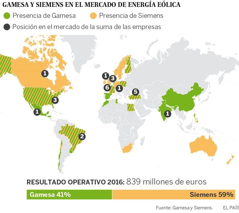 Desde que los accionistas de Gamesa aprobaran la transacción a finales de octubre, el acuerdo ha superado también el escrutinio de la CNMV, que eximió en diciembre a la compañía germana de lanzar una OPA por el control de la empresa vasca. Gamesa, que obtuvo el año pasado un beneficio neto de €UR 301 millones, un 77% más que en 2015, prevé que la fusión se cierre en abril.