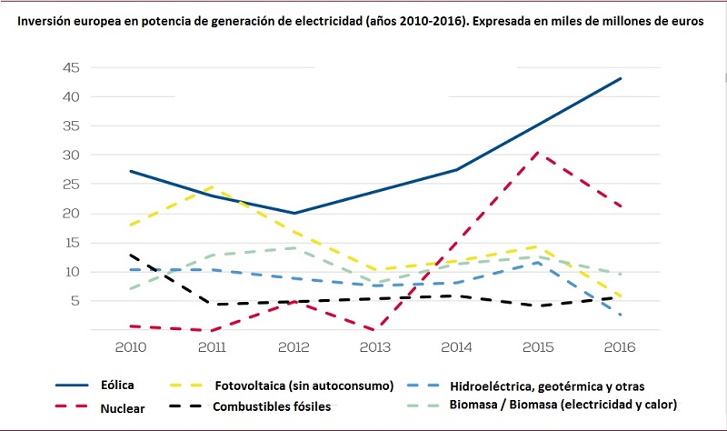 Más inversores privados acudieron al viento que a la nuclear, el gas o los combustibles fósiles