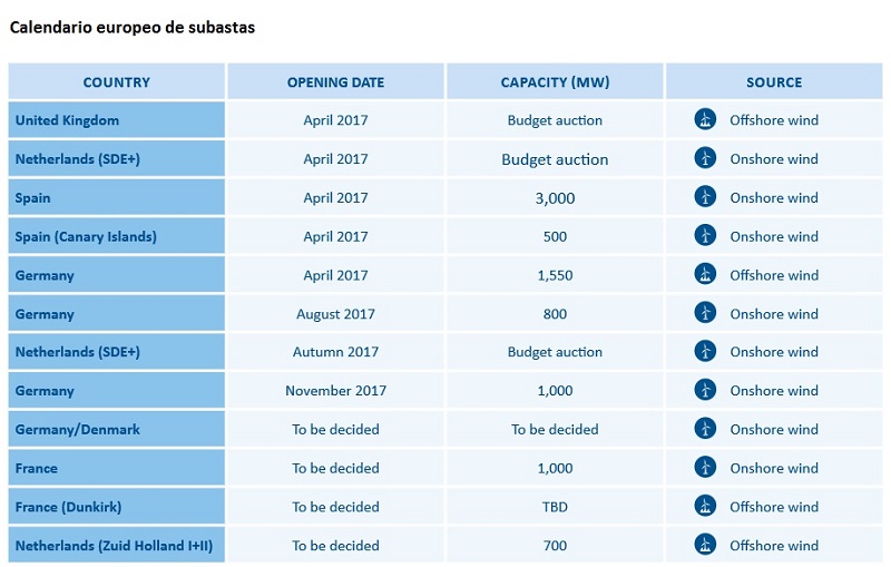 • La asociación de la industria eólica europea prevé por otro lado una bajada de la inversión en 2017, consecuencia de la transición hacia el modelo de subastas de potencia, que va a ralentizar el despliegue de la eólica "en los principales mercados".