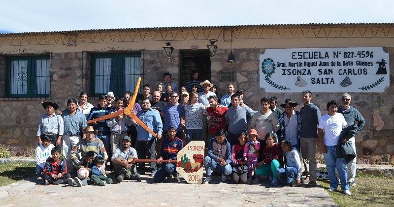Durante la semana del 18 de mayo más de 30 personas trabajaron en la construcción de un aerogenerador. Entre ellos se contaban estudiantes y docentes de la Universidad Nacional de Salta (UNSA) y de la escuela rural de Isonza, junto con algunos participantes particulares.
